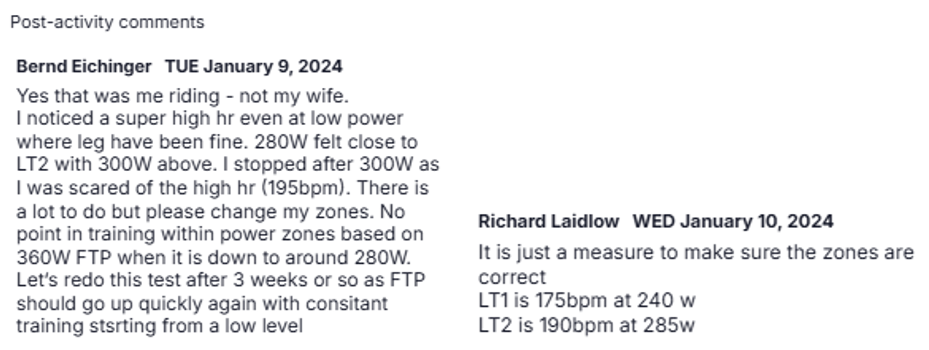 Der erste Schritt nach einer längeren Pause (in meinem Fall Krankheit) war ein Test, um die Trainingszonen zu bestimmen. Hier gibt es schon viele Möglichkeiten (Laktattest, Spiro-Laktattest, Rampentests mit 1min/längeren Rampen, klassische 20min FTP-Tests, INSCYD,...).